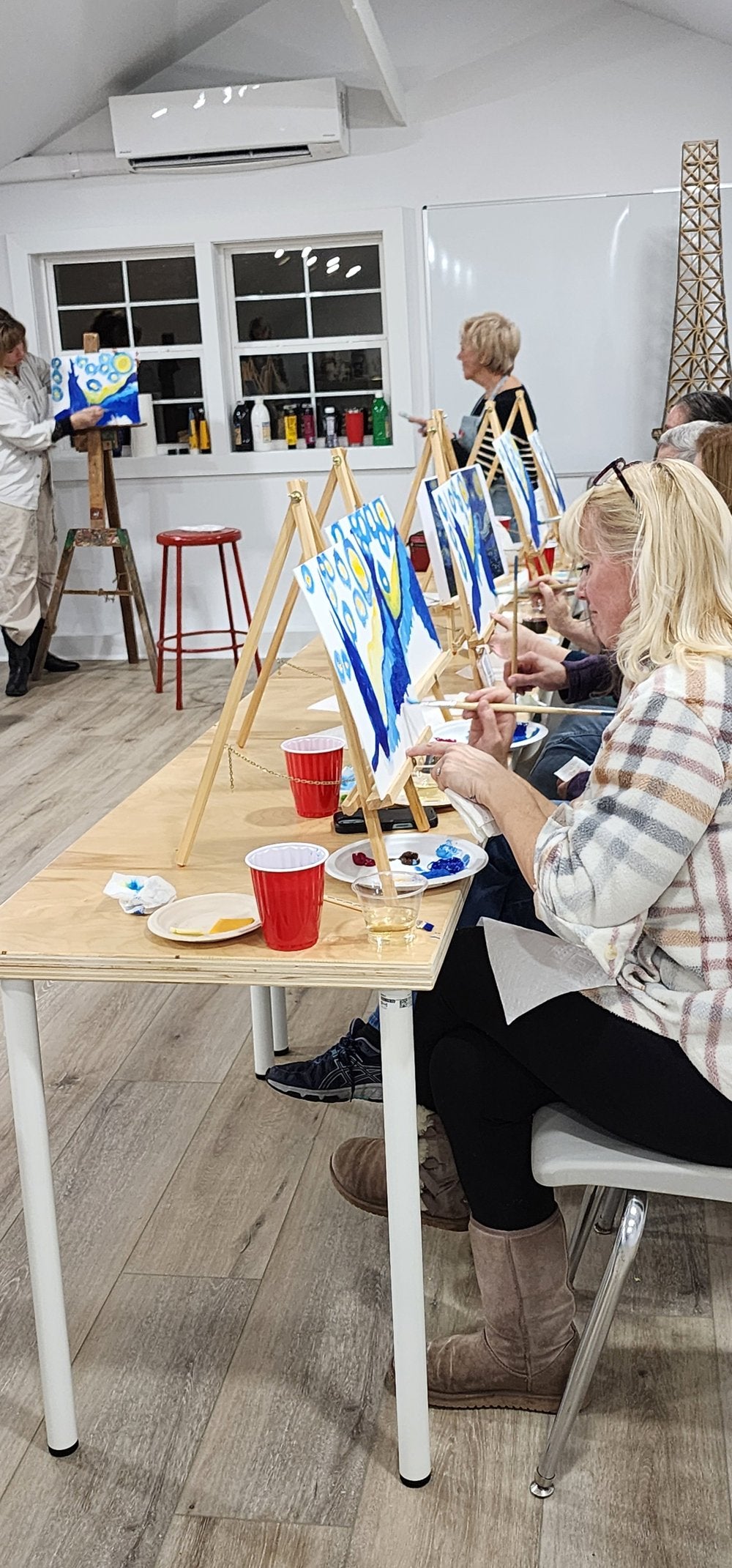 All supplies provided: Canvas, paints, brushes. Enjoy complimentary wine & cheese. Take home your own frame-worthy painting. Personalized guidance from experienced instructors.